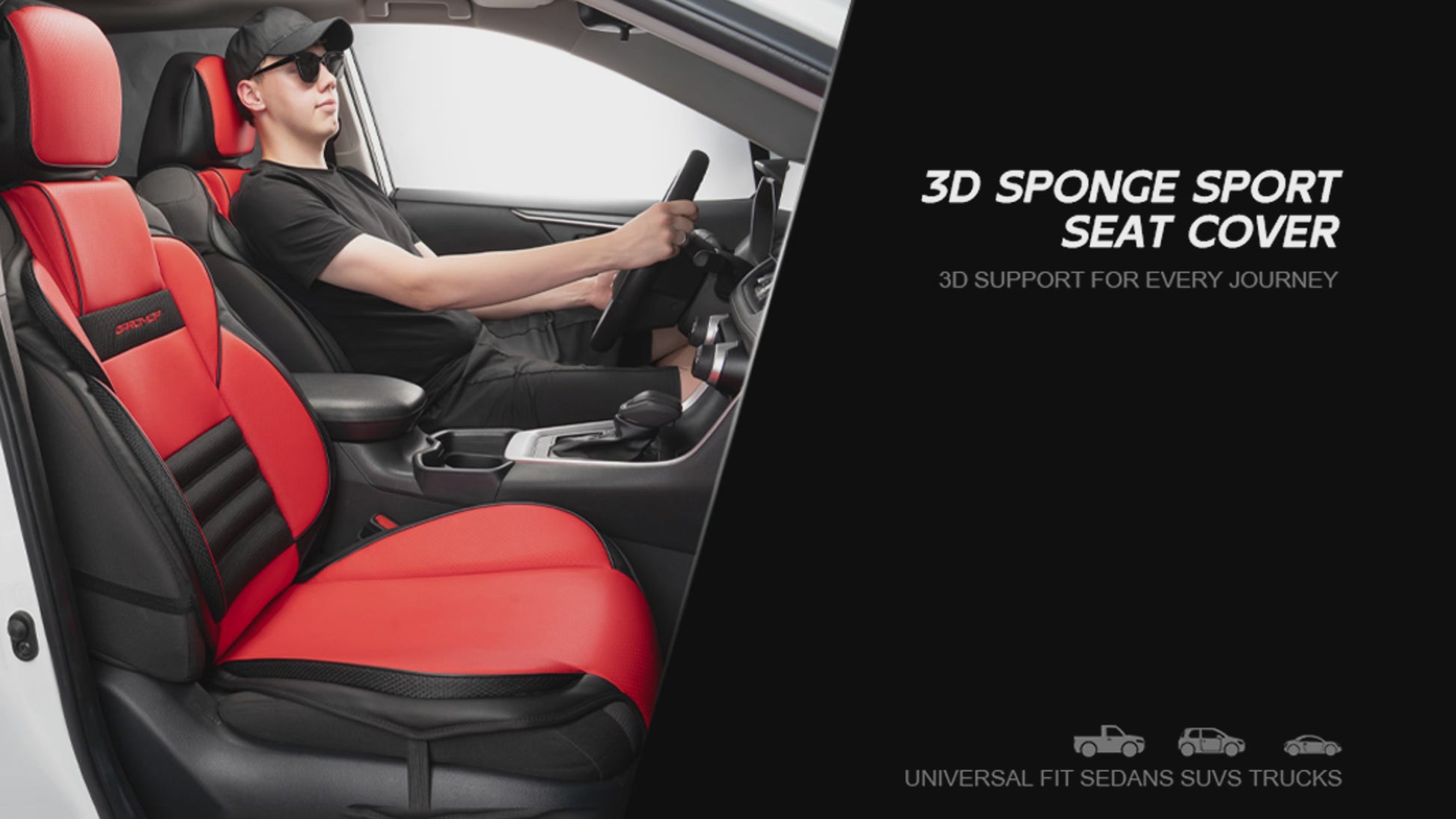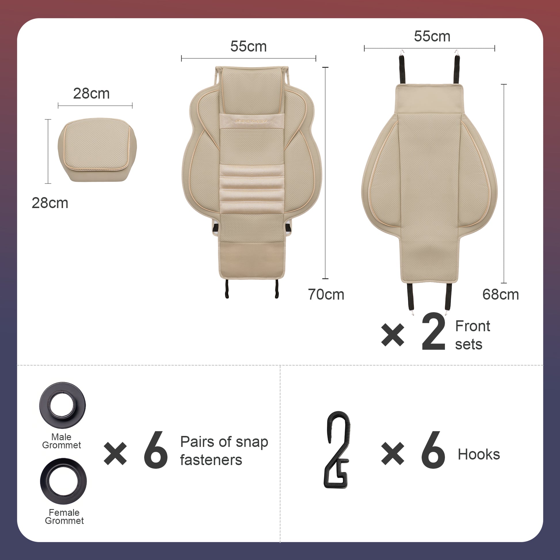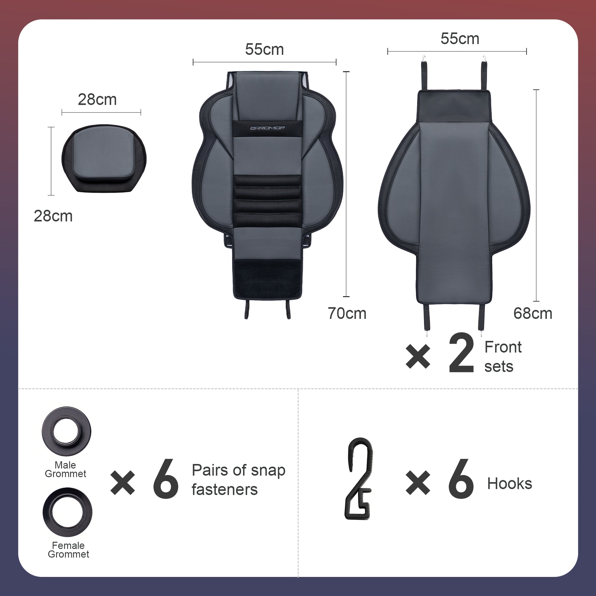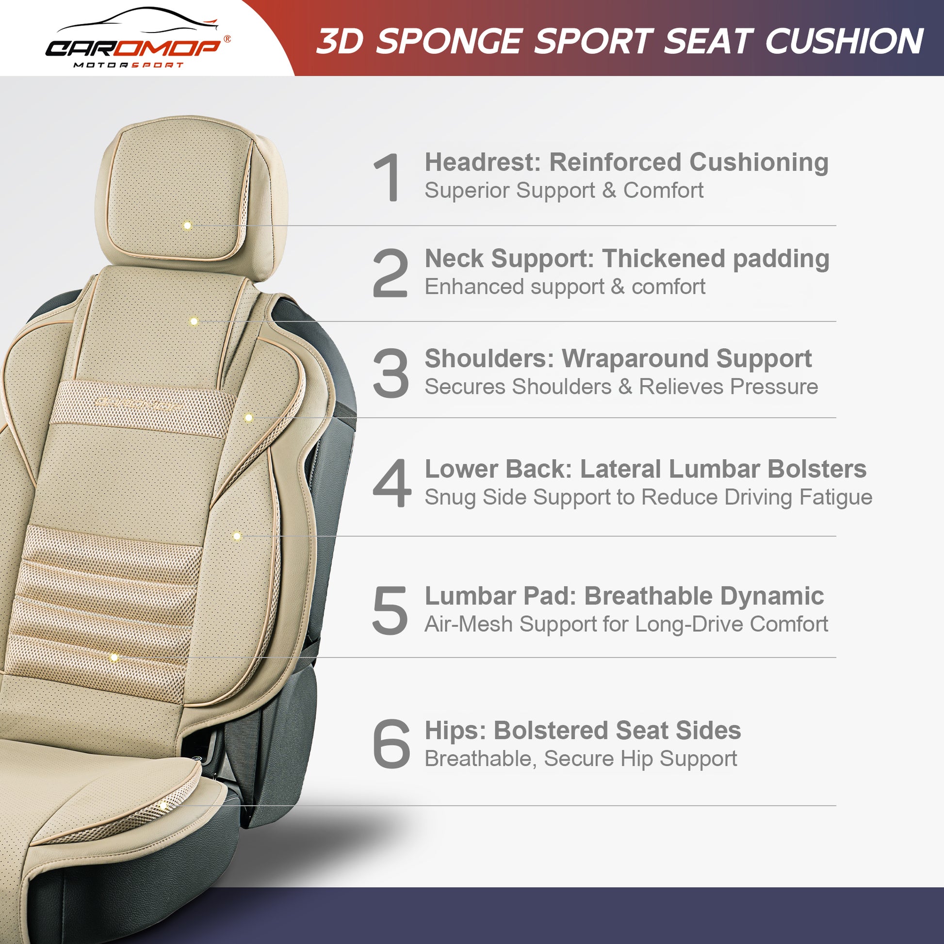 CAROMOP 3D Thick Car Seat Covers, Front Set, Breathable PU Leather with Mesh, Non-Slip, Universal Fit for Car, SUV, Van, Truck