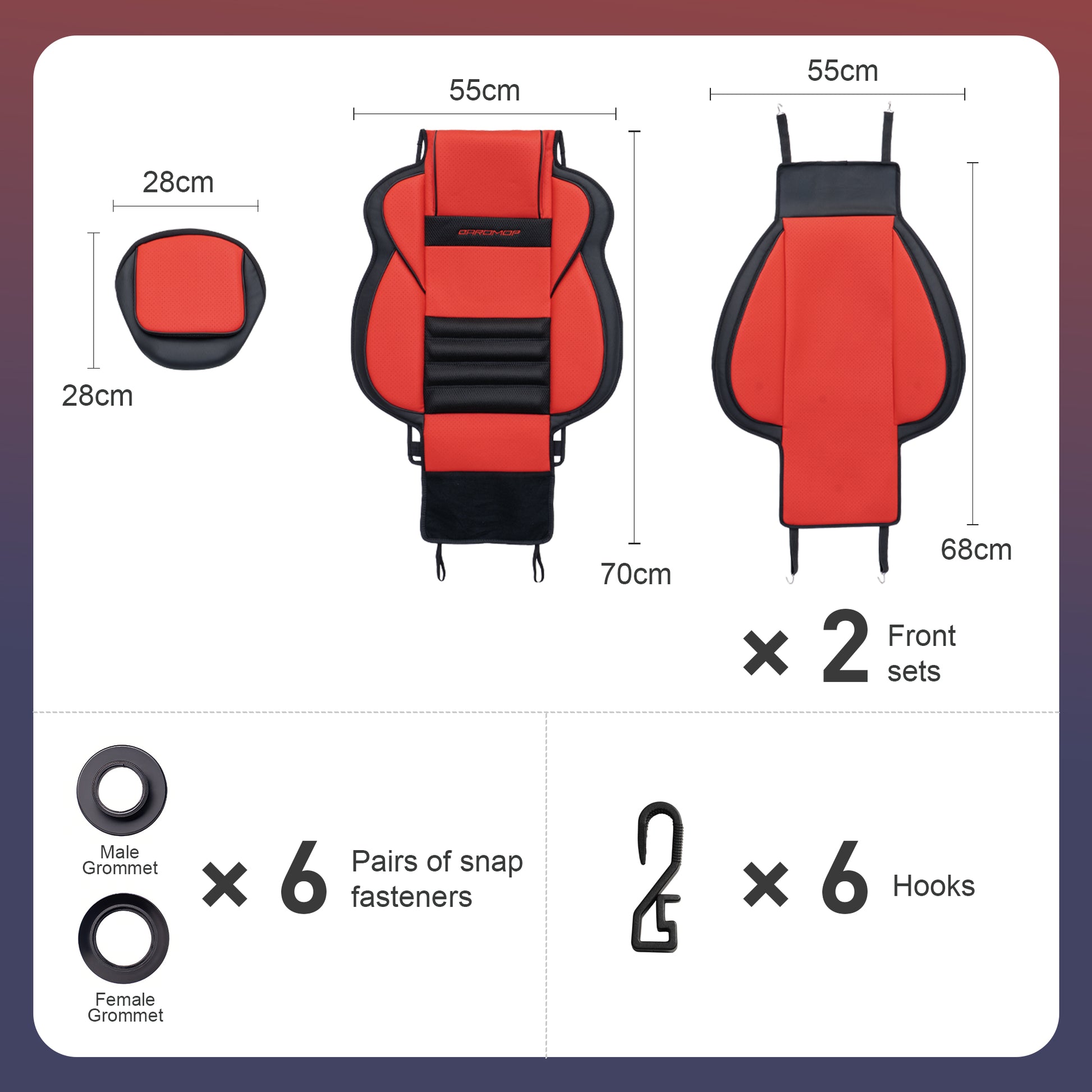 - 【Sporty Design】 - This racing-inspired seat cover combines breathable mesh and premium leather for style and comfort. Ergonomically designed to support shoulders, neck, and lumbar while maintaining airbag compatibility. Fits front seats with armrests and features an added back pocket without blocking original storage.