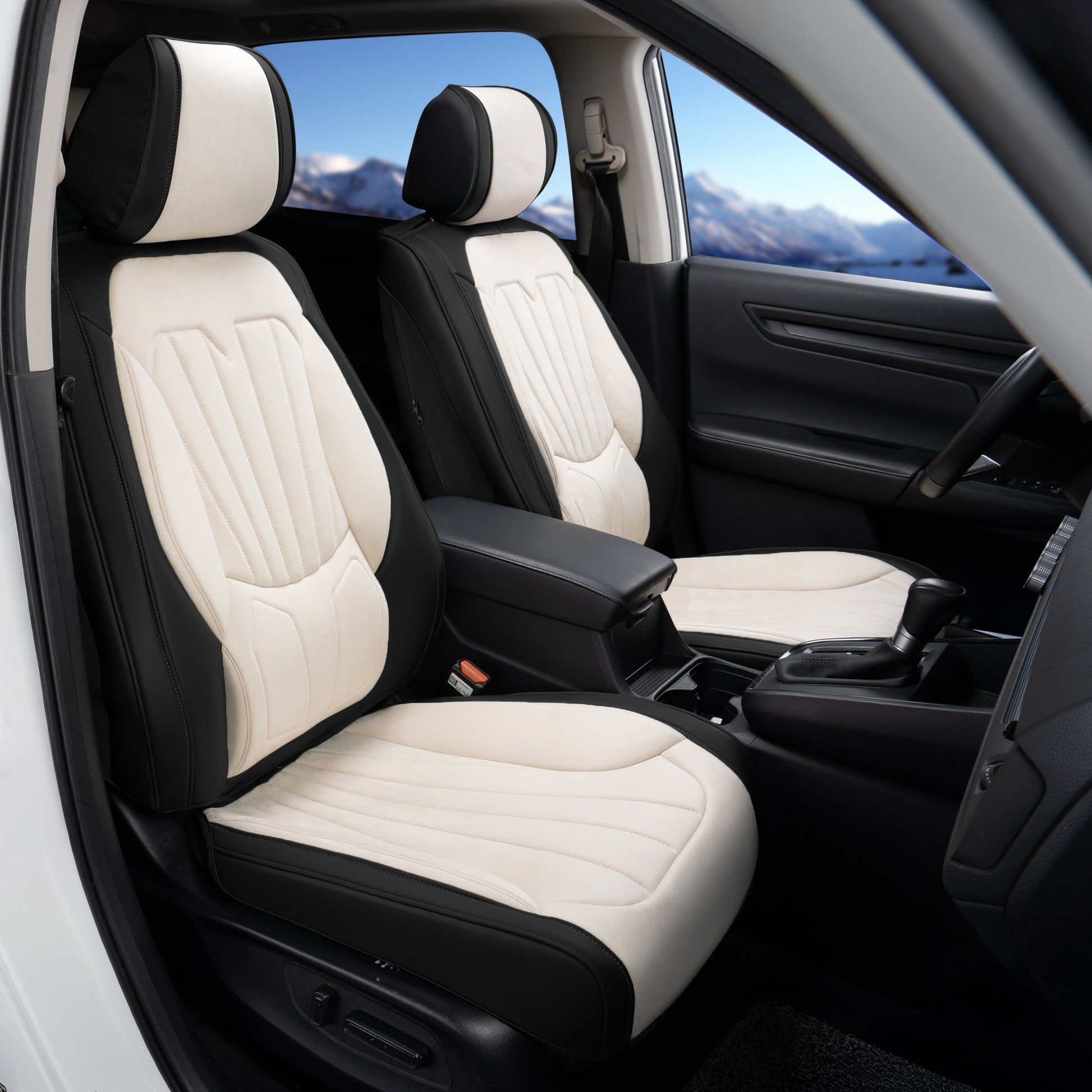 - Diseño cómodo: Con una combinación única de múltiples telas, esta funda de asiento está diseñada para mejorar tu experiencia de conducción. El panel central está acolchado con espuma gruesa y franela suave para un tacto superior y mayor comodidad. El resistente cuero sintético en los laterales, con elegantes costuras, proporciona estilo y soporte. Diseñada para ofrecer comodidad y durabilidad, garantiza un viaje placentero en todo momento.