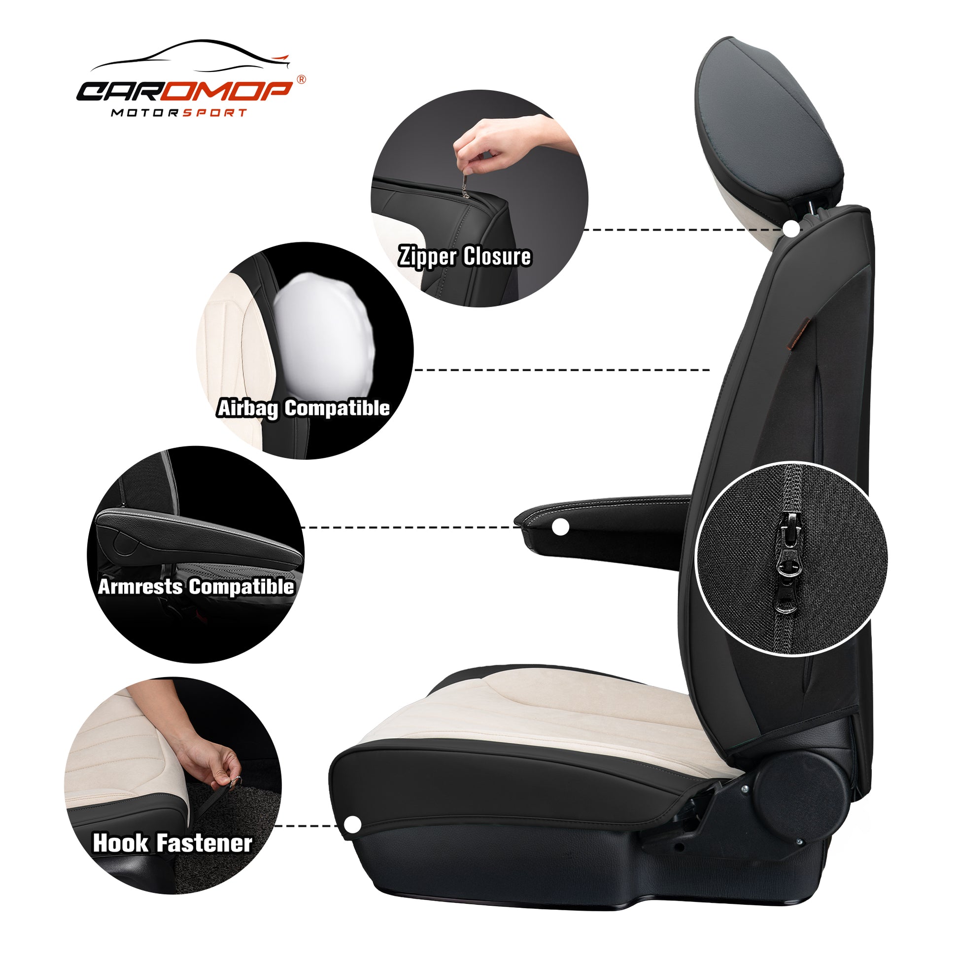 - 【Compatibilidad con airbags】 Estas fundas de asiento, compatibles con airbags, garantizan la seguridad sin comprometer la funcionalidad. Están diseñadas para adaptarse a la mayoría de los vehículos y son fáciles de instalar. Nuestra exclusiva tecnología patentada permite que los airbags se desplieguen sin problemas en caso de emergencia, brindando tranquilidad en cada viaje.