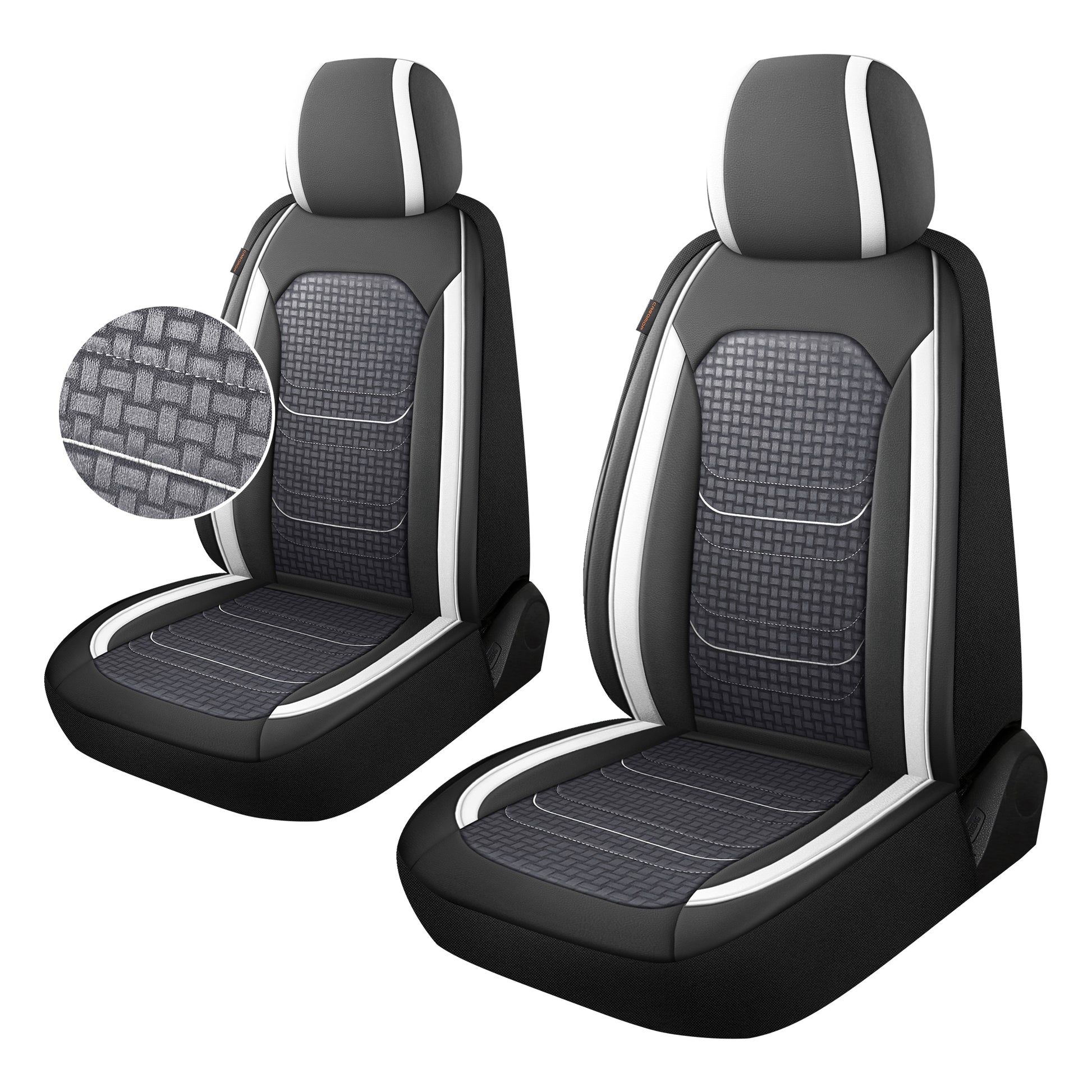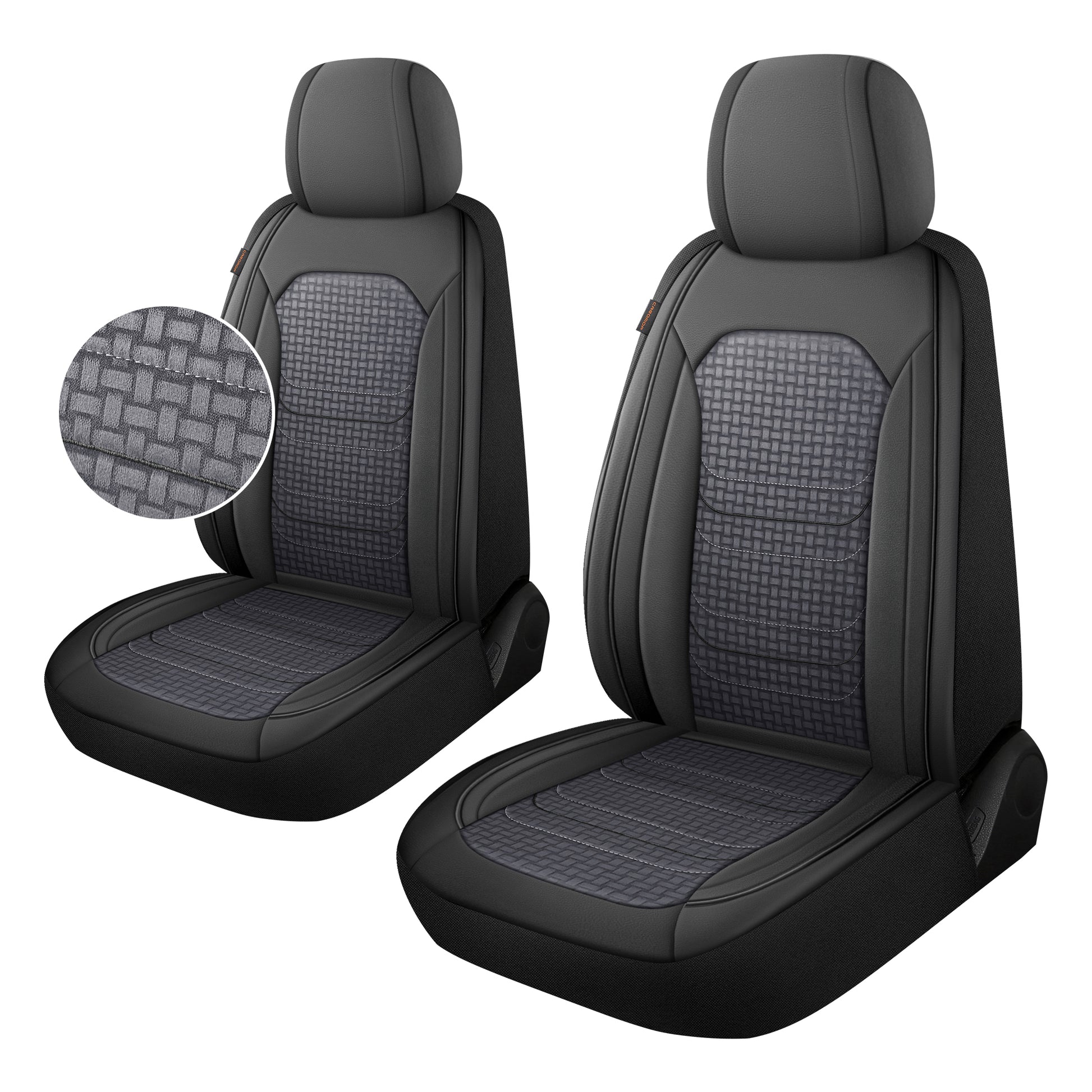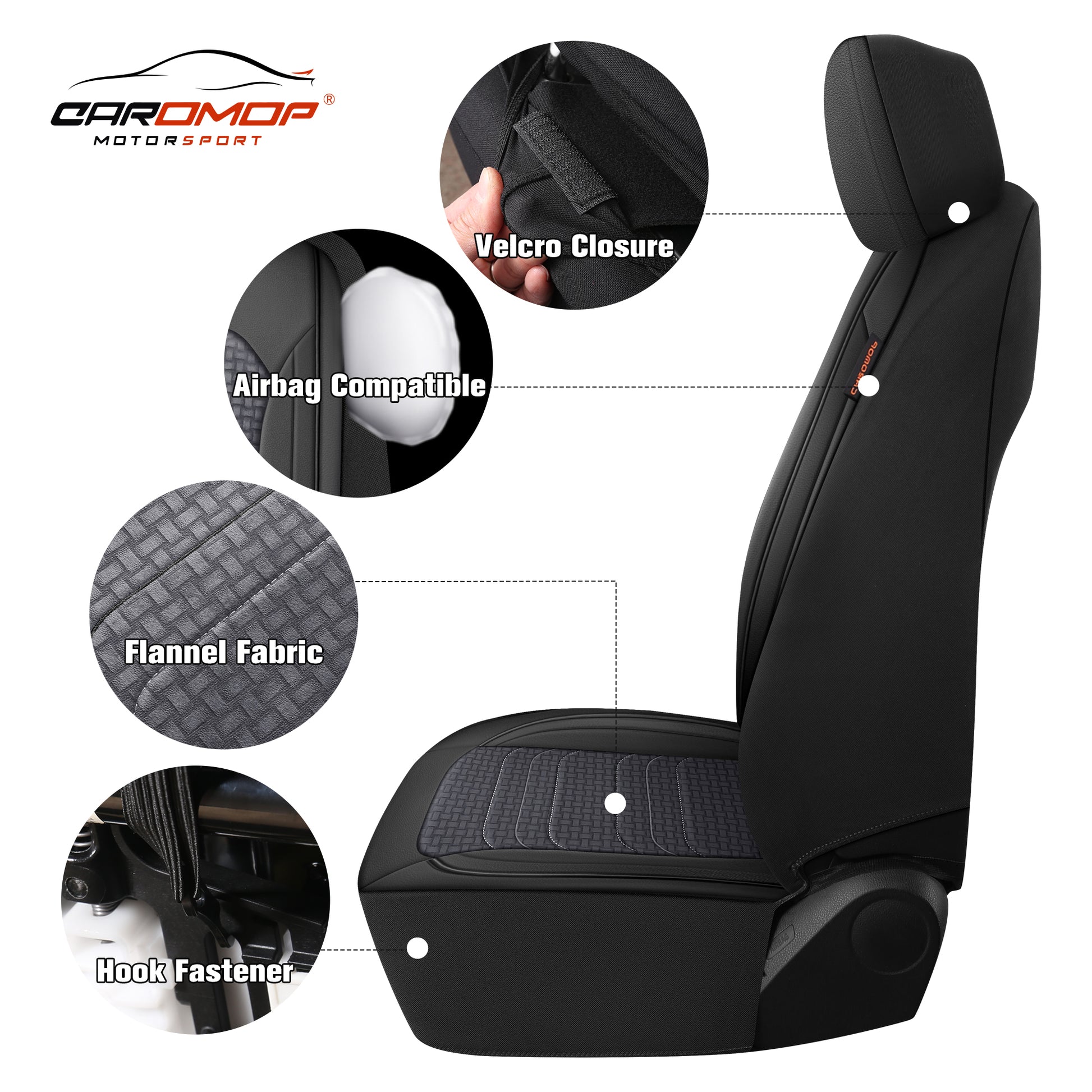 CAROMOP Premium PU Leather&Flannel Car Seat Covers 2 Front Set with Breathable Cloth,Universal Fit for Most Car Interior Covers-Sedan Truck SUV